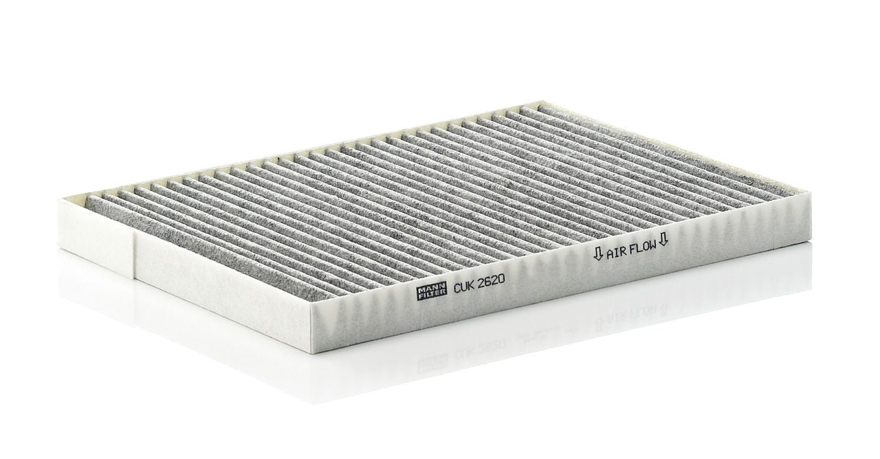 High-quality MANN-FILTER cabin filters with active carbon - nearly 100% protection from particles like pollen, diesel soot & tyre abrasion / Additional protection from harmful gases & unpleasant odour. The trated highly-effective activated carbon gives protection against harmful gases such as ozone, nitrogen oxide or sulphur dioxide and eliminates unpleasant odours during the entire service interval.