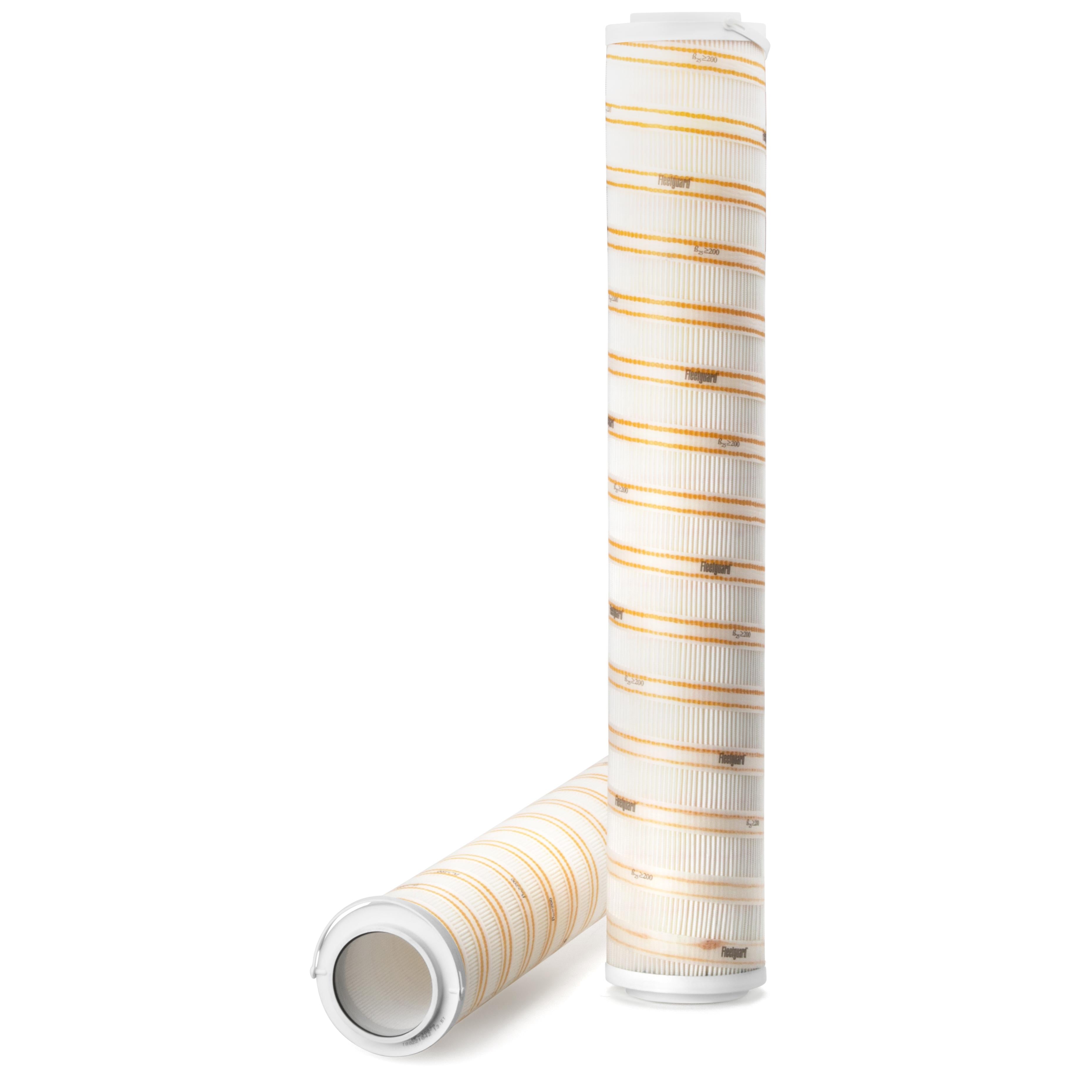 The efficiency of the element is shown using the Micron (µ) and Beta (β) ratings. The micron rating indicates the size of the particle being filtered and the beta rating the efficiency, calculated as 1/β.