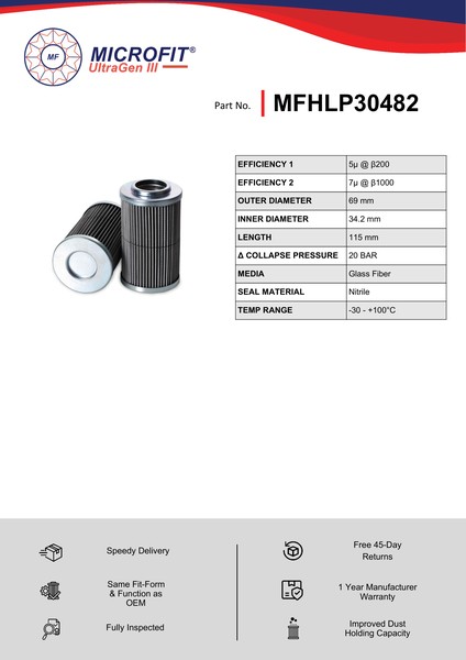 Genuine MICROFIT® UltraGen III MFHLP30482 Pressure Filter. Engineered and manufactured in Great Britain the MFHLP30482 is designed to meet or exceed the quality and performance of OEM quality standards, ensuring superior filtration performance and the longest possible filter life.